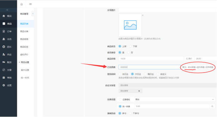 社区团购·虚拟销量(商品设置)